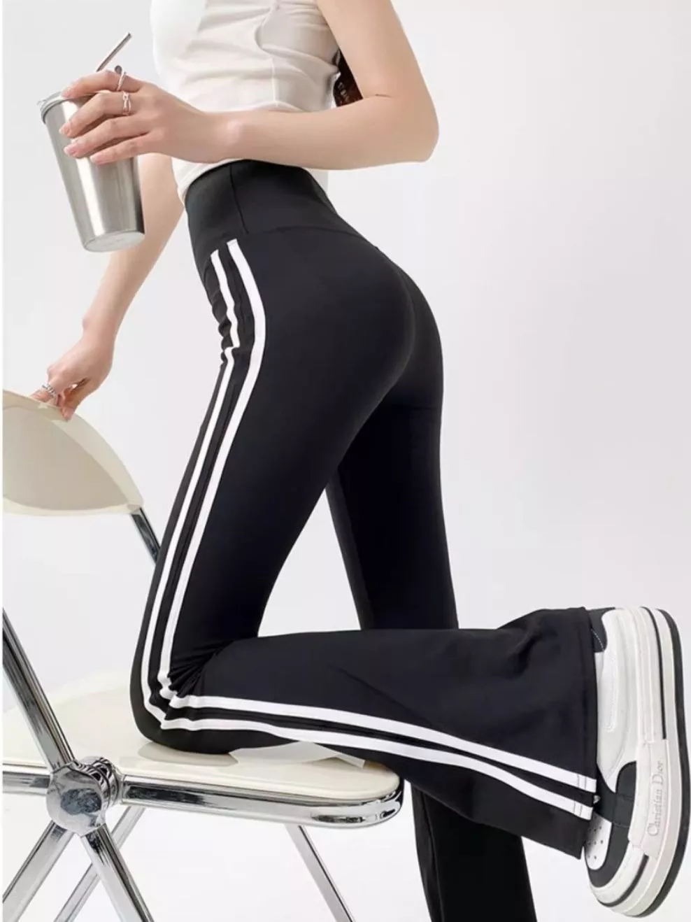 Công thức phối đồ hoàn hảo cho phong cách này chính là kết hợp quần legging với áo croptop hoặc áo thun basic. Một chiếc áo croptop sẽ giúp bạn khoe khéo vòng eo thon gọn, trong khi áo thun đơn giản lại mang đến vẻ ngoài gần gũi, năng động. Hoàn thiện set đồ với một đôi giày sneakers trắng hoặc chunky sneakers, bạn đã sẵn sàng xuống phố với diện mạo đầy sức sống và cuốn hút.